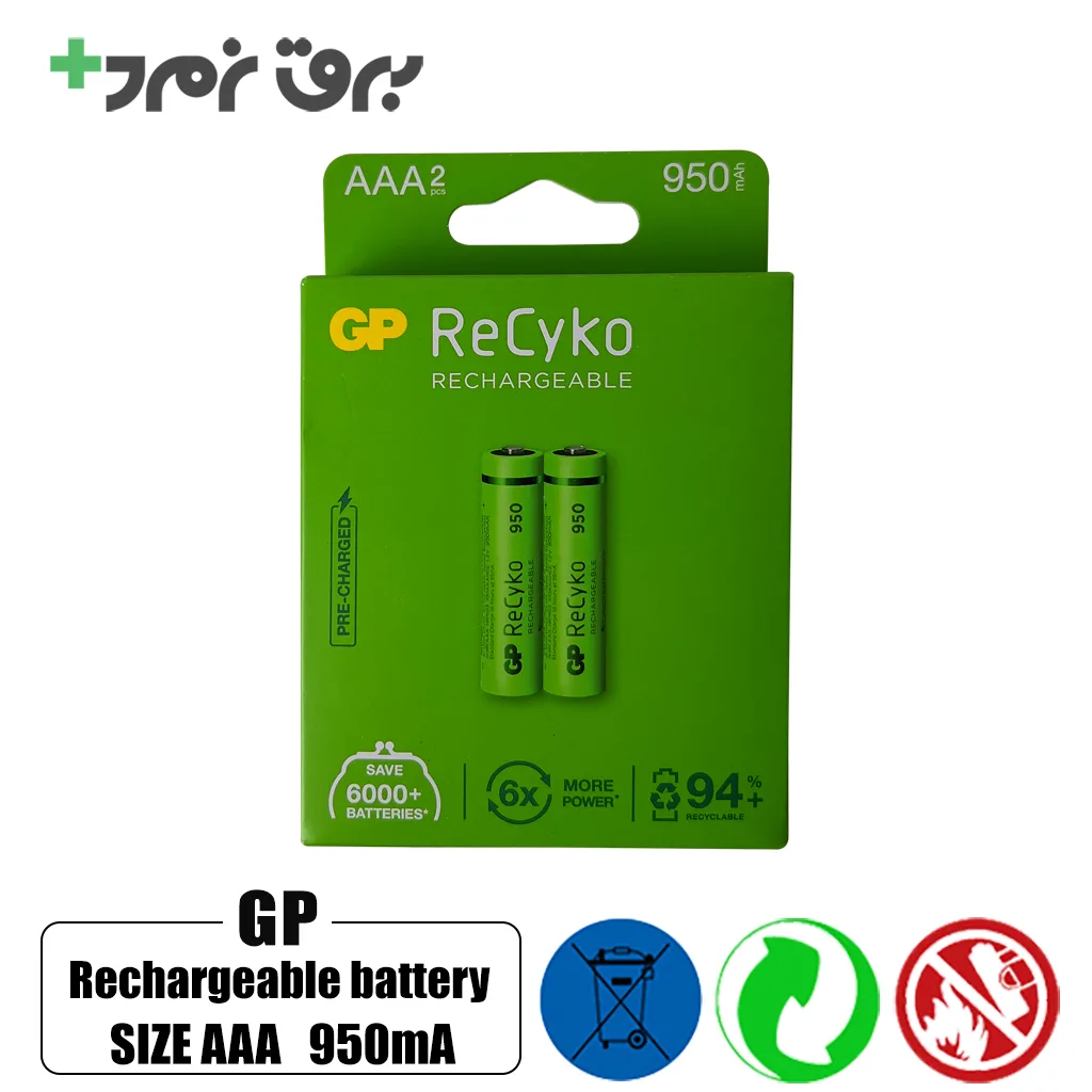 باتری نیم قلمی شارژی (AAA) 950 میلی آمپر کارت 2 عددی برند جی پی